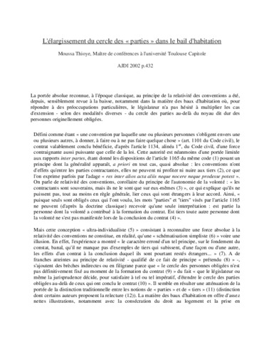 L'élargissement du cercle des parties dans le bail d'habitation.