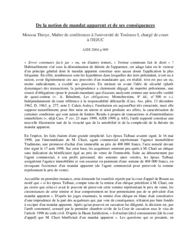 De la notion de mandat apparent et de ses conséquences.