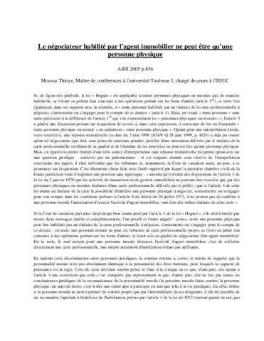 Le négociateur habilité par l'agent immobilier ne peut être qu'une personne physique.