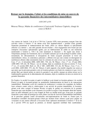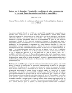 Retour sur le domaine, l'objet et les conditions de mise en oeuvre de la garantie financière des intermédiaires immobiliers.