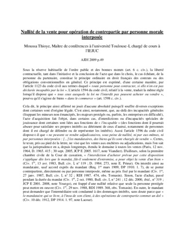 Nullité de la vente pour opération de contrepartie par personne morale interposée.