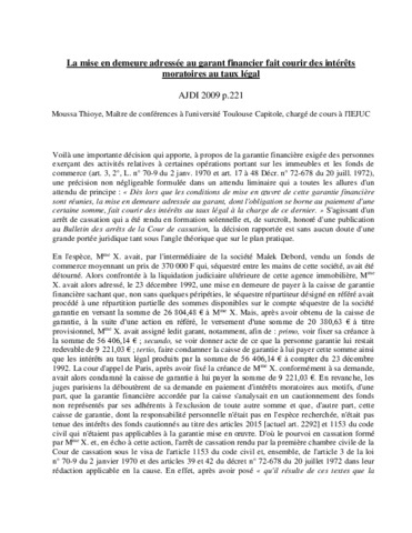 La mise en demeure adressée au garant financier fait courir des intérêts moratoires au taux légal.