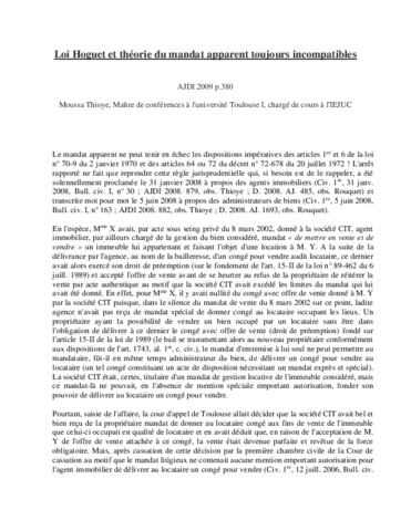 Loi Hoguet et théorie du mandat apparent toujours incompatibles.