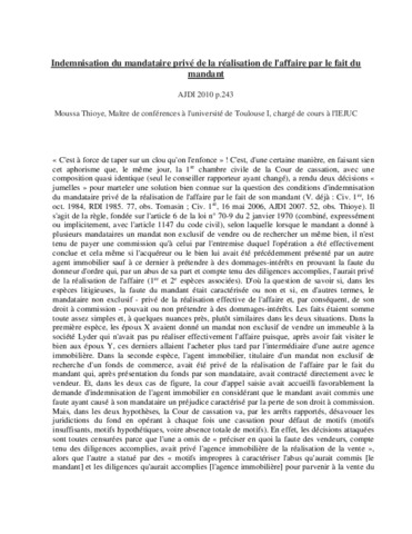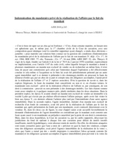 Indemnisation du mandataire privé de la réalisation de l'affaire par le fait du mandant.