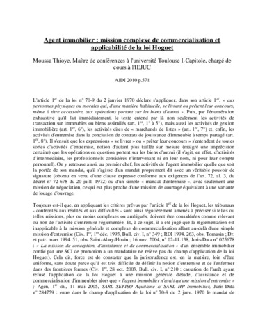 Agent immobilier : mission complexe de commercialisation et applicabilité de la loi Hoguet.