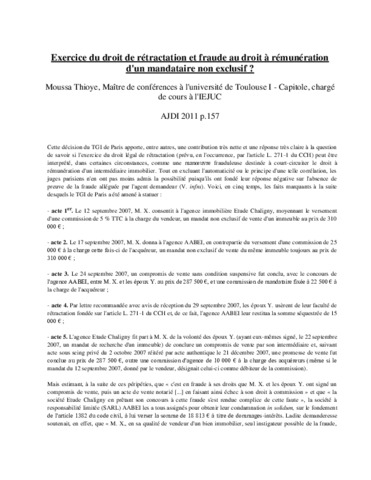 Exercice du droit de rétractation et fraude au droit à rémunération d'un mandataire non exclusif ?