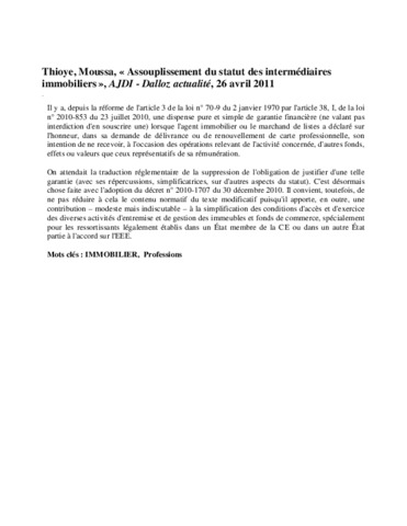 Assouplissement du statut des intermédiaires immobiliers.