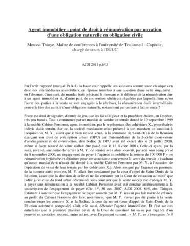 Agent immobilier : point de droit à rémunération par novation d'une obligation naturelle en obligation civile.