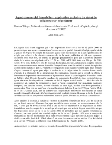 Agent commercial immobilier : application exclusive du statut de collaborateur-négociateur.