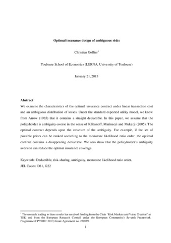 possible priors can be ranked according to the monotone likelihood ratio order, the optimal contract contains a disappearing deductible. We also show that the policyholder’s ambiguity aversion can reduce the optimal insurance coverage.
