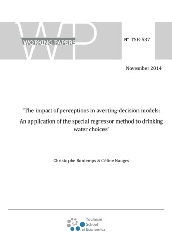 The impact of perceptions in averting-decision models: An application of the special regressor method to drinking water choices.