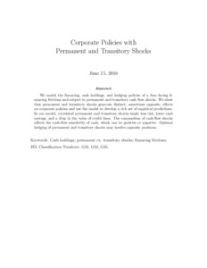 | Uncontrolled Keywords: | Corporate policies, permanent vs, temporary shocks, financing frictions |