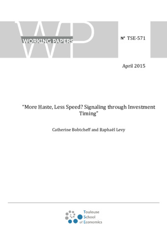 Bobtcheff, Catherine and Levy, Raphaël (2015) More Haste, Less Speed? Signaling through Investment Timing. TSE Working Paper, n. 15-571, Toulouse
