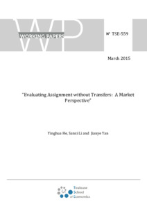 Evaluating Assignment without Transfers: A Market Perspective. (deposited 16 Mar 2015 14:56)