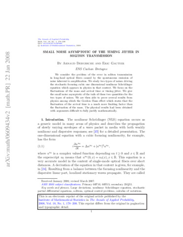 Small noise asymptotic of the timing jitter in soliton transmission.