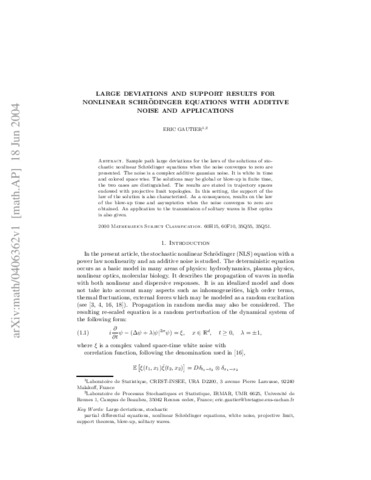 Large deviations and support results for nonlinear Schrödinger equations with additive noise and applications.