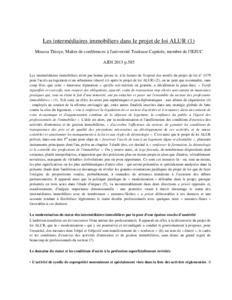 Les intermédiaires immobiliers dans le projet de loi ALUR.