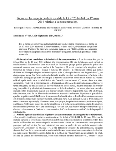 Aspects de droit rural de la loi n° 2014-344 du 17 mars 2014 relative à la consommation (étude 13).