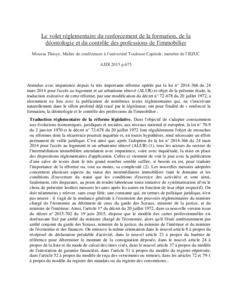 Le volet réglementaire du renforcement de la formation, de la déontologie et du contrôle des professions de l'immobilier.