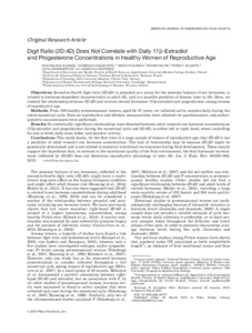 Digit Ratio (2D:4D) Does Not Correlate with Daily 17b-Estradiol and Progesterone Concentrations in Healthy Women of Reproductive Age.