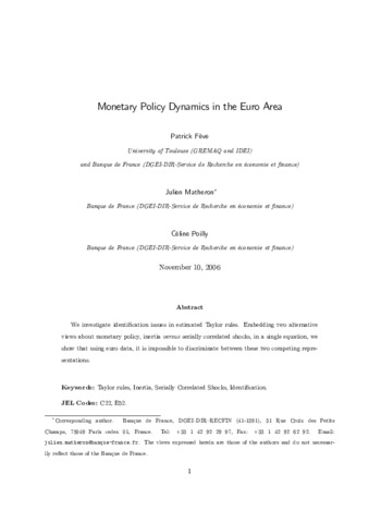 Monetary Policy Dynamics in the Euro Area.