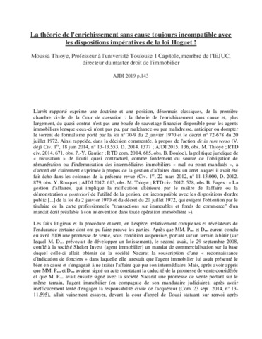 La théorie de l'enrichissement sans cause toujours incompatible avec les dispositions impératives de la loi Hoguet ! (cour de cassation, 3e civ. 31 janvier 2018).
