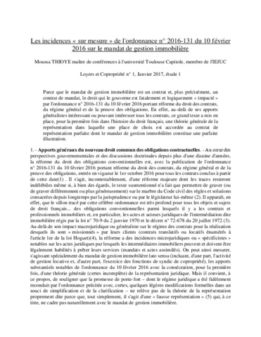Les incidences "sur mesure" de l'ordonnance numéro 2016-131 du 10 février 2016 sur le mandat de gestion immobilière.