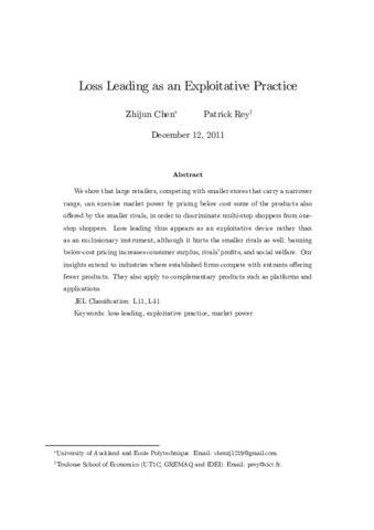 - Loss Leading as an Exploitative Practice. (deposited 18 Jan 2012 06:03) [Currently Displayed]