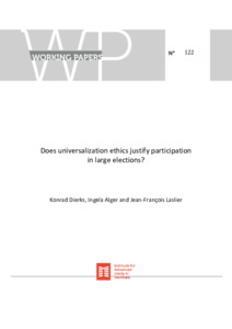 Uncontrolled Keywords: | voter turnout, voting, ethical voter, homo moralis, Kantian morality |