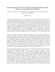 Libre opinion sur l’article 15 de « l’offre de réforme du droit des contrats spéciaux » de l’association Henri Capitant.