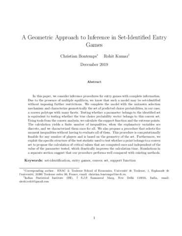 A Geometric Approach to Inference in Set-Identified Entry Games. (deposited 27 Aug 2018 13:10)