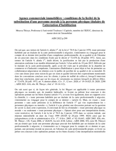 Agence commerciale immobilière : les conditions de la licéité de la substitution d’une personne morale à la personne physique titulaire de l’attestation d’habilitation.