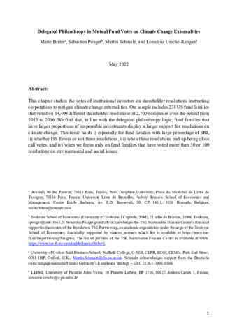 | Uncontrolled Keywords: | Climate change externalities, Delegated philantropy, Mutual Fund Families, Voting |