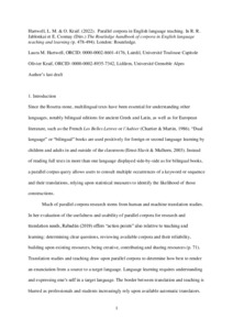 This chapter reviews research on the use of parallel corpora to support English language teaching and learning to speakers of other languages. A parallel corpus is a corpus that contains a collection of original texts translated into one or more other languages in an aligned fashion so that corresponding segments, usually sentences or paragraphs, are visually matched. Drawing upon the technical advances produced in high-stake multilingual settings such as the European Parliament, multilingual corpora have contributed notably to human and machine translation. As highlighted in a review of the literature, these corpora are now available in a broad range of genres and languages, surpassing even differences of alphabets or characters. We discuss how this availability of tools and languages define factors of core issues. We focus on language teaching and learning, including three case studies illustrating the interest of parallel corpora: multilingual resources, false cognates, and complex phenomena. One caveat related to the use of parallel corpora is the possible over-normalisation or simplification found in translated texts. This chapter concludes with some reflections on technological advances, notably stemming from artificial intelligence, which will continue to influence the possibilities of parallel corpora for language teaching.