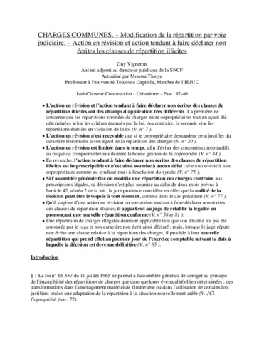 Charges communes – Modification de la répartition par voie judiciaire. – Action en révision et action tendant à faire déclarer non écrites les clauses de répartition illicites.