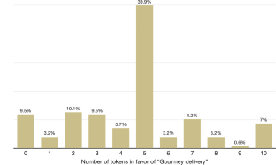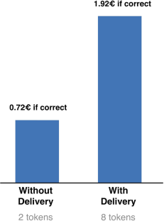 Some participants whose beliefs are strictly positive but very close to zero might assign zero tokens to the delivery scenario, as our discrete 10-token scale is not fine enough for them to express their beliefs appropriately.