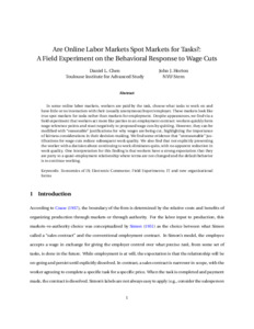 Chen, Daniel L. and Horton, John J. (2016) Are Online Labor Markets Spot Markets for Tasks?: A Field Experiment on the Behavioral Response to Wage Cuts. IAST Working Paper, n. 16-37