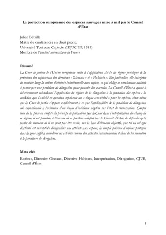 | Uncontrolled Keywords: | Species, Birds directive, Habitats directive, Interpretation, Derogations, CJUE, Conseil d’Etat |