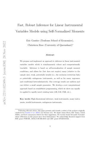 Fast, Robust Inference for Linear Instrumental Variables Models using Self-Normalized Moments.