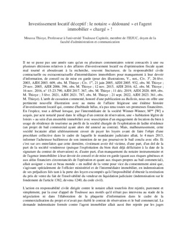 Investissement locatif déceptif : le notaire « dédouané » et l’agent immobilier « chargé » !