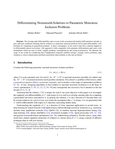 Differentiating nonsmooth solutions to parametric monotone inclusion problems.