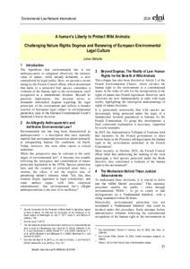 A Human’s Liberty to Protect Wild Animals – Challenging Nature Rights Dogmas and Renewing of European Environmental Legal Culture.