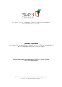 Étude qui concerne le modèle français de la société coopérative. Dans cette contribution j'ai volontairement évité de présenter de manière exhaustive le régime applicable à la société coopérative afin de présenter l’originalité de ce groupement dans notre système juridique français, que ce soit du point de vue de la notion que de son régime.