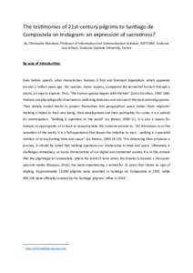 The testimonies of 21st-century pilgrims to Santiago de Compostela on Instagram: an expression of sacredness?