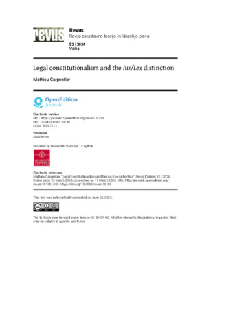 Legal constitutionalism and the lex/jus distinction.