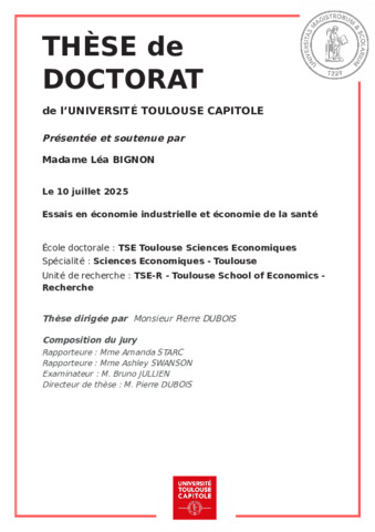 Bignon, Léa (2025) Essais en économie industrielle et économie de la santé. .