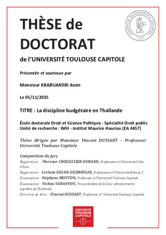 Krabuansri, Anan (2025) La discipline budgétaire en Thaïlande. École doctorale Droit et Science Politique (Toulouse).