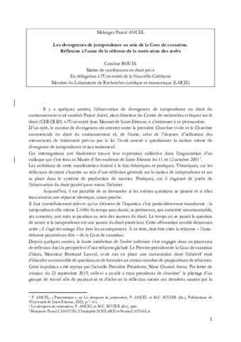 Les divergences de jurisprudence au sein de la Cour de cassation. Réflexion à l’aune de la réforme de la motivation des arrêts.