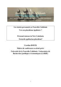 Personal statuses in New Caledonia, towards egalitarian pluralism?