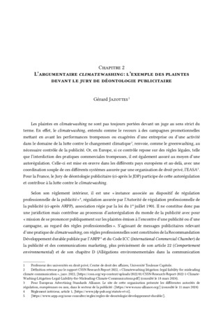 L’argumentaire climatewashing : l’exemple des plaintes devant le jury de déontologie publicitaire.